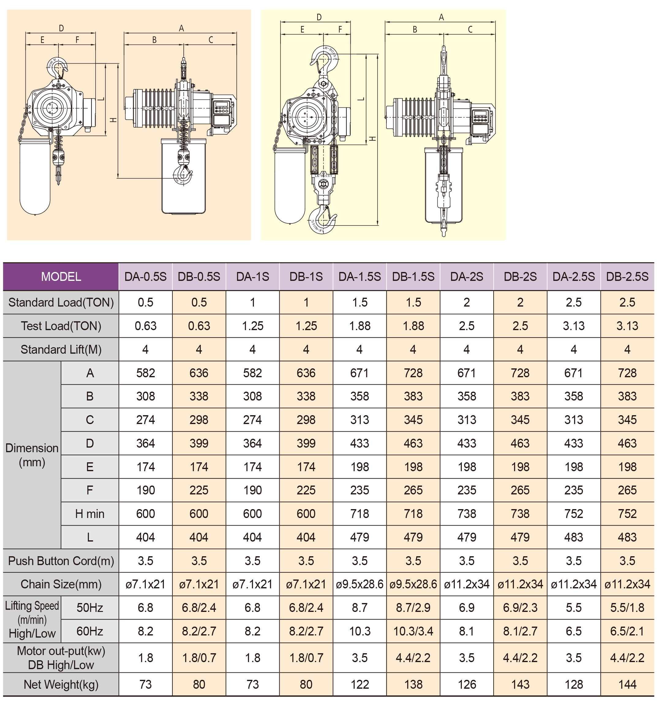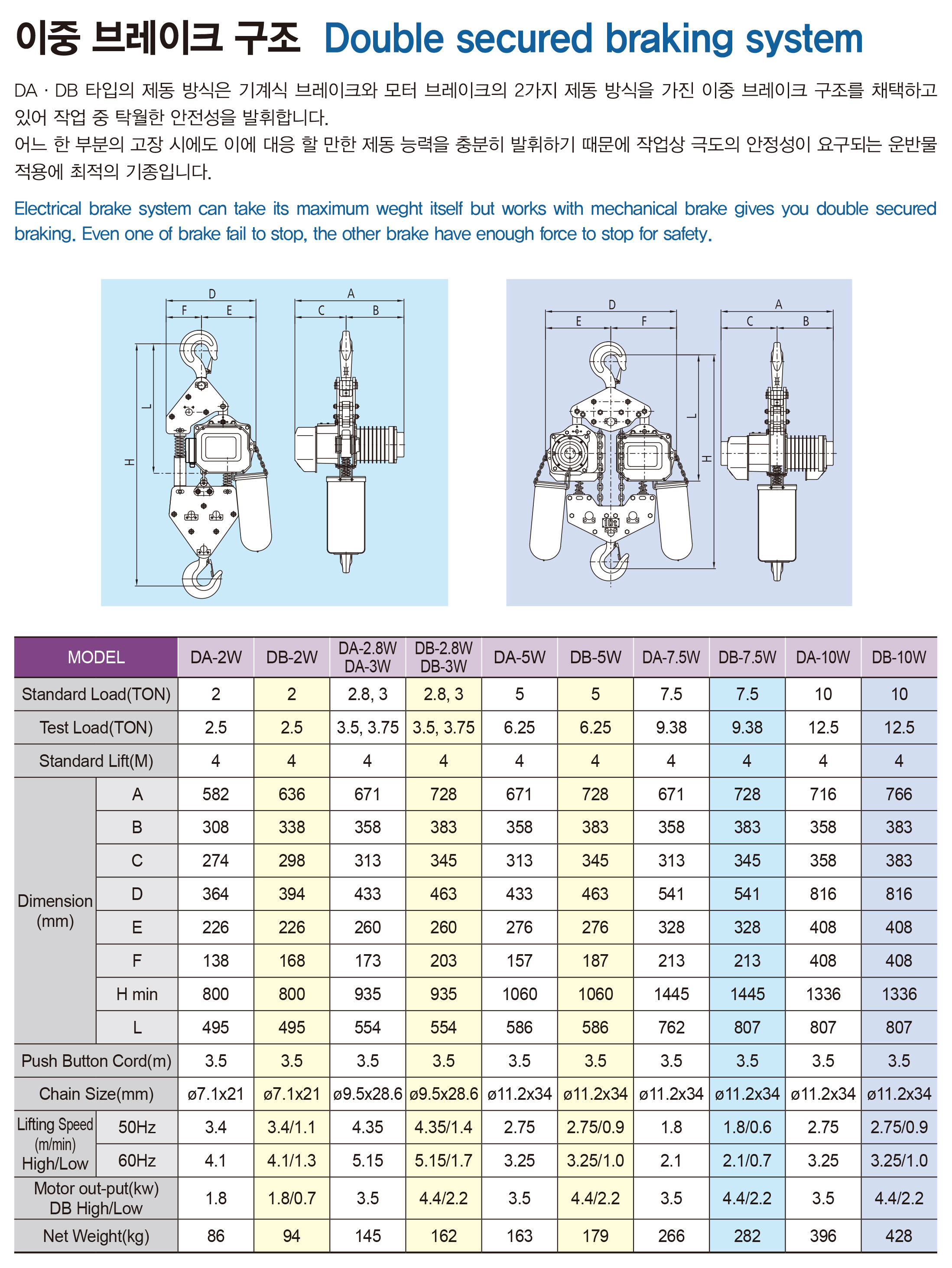 오랜 기술과 경험이 축적되어 있는 DA·DB TYPE 체인 호이스트,