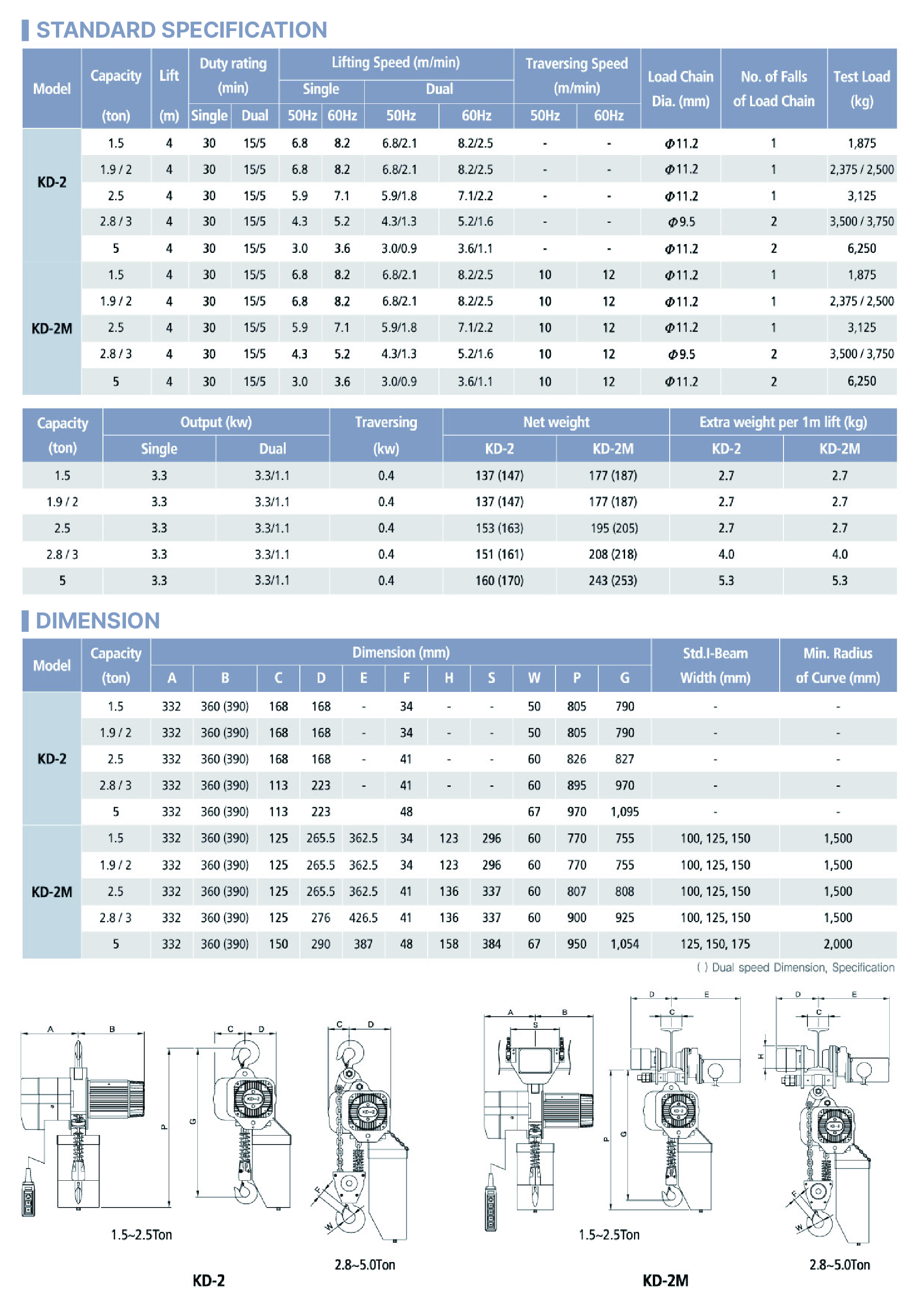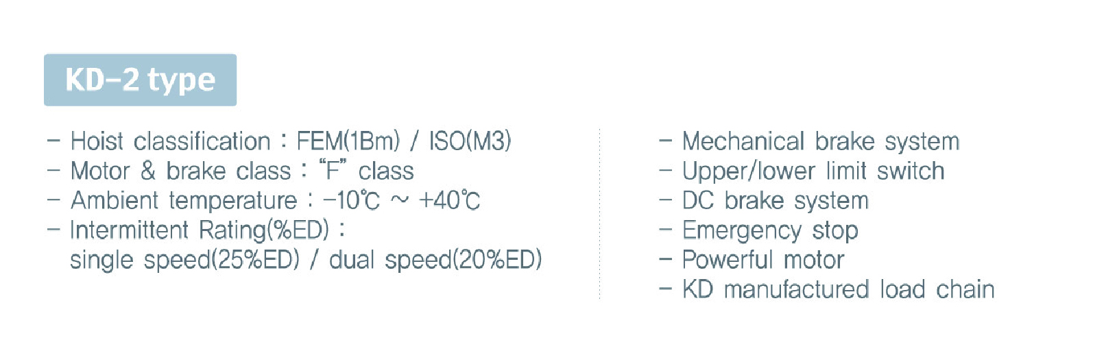 저소음으로 설계된 KD-2 TYPE 호이스트는