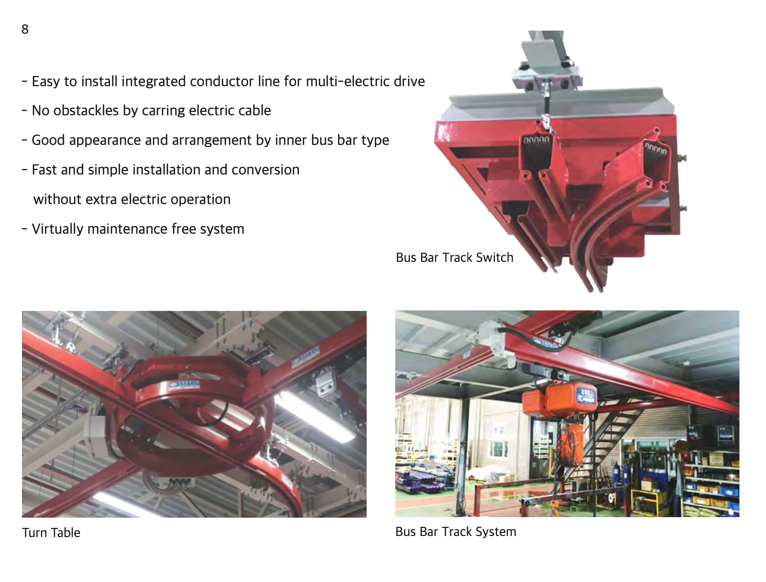 - 구성에 따라 50~2,000kg 용량 범위, 곡선 트랙 적용 가능성 또한 큰 장점