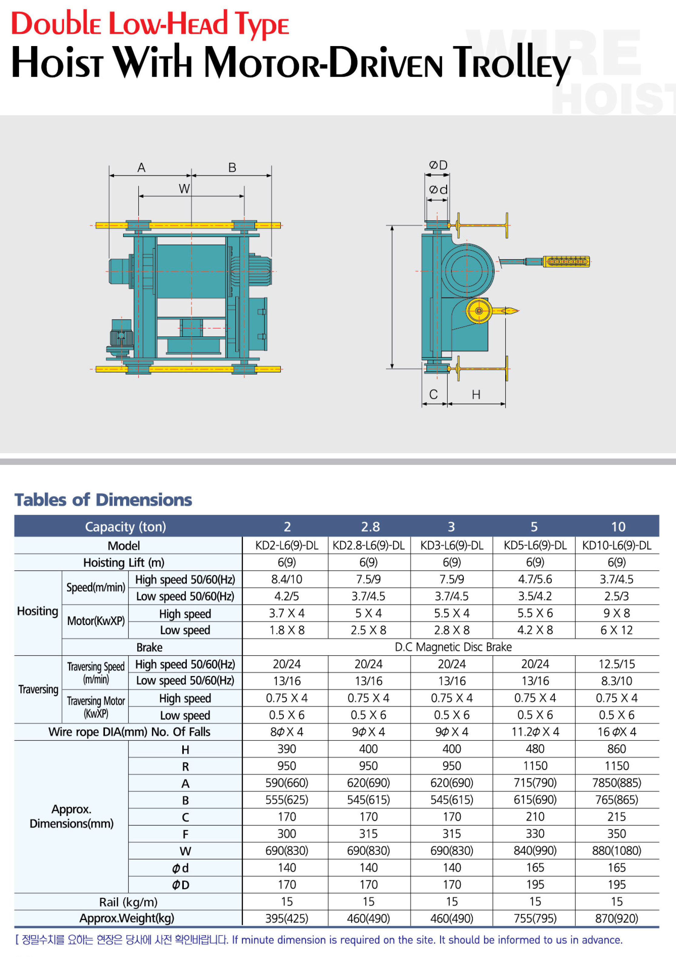 극동호이스트 - 와이어호이스트 - 로우헤드 더블레일 호이스트