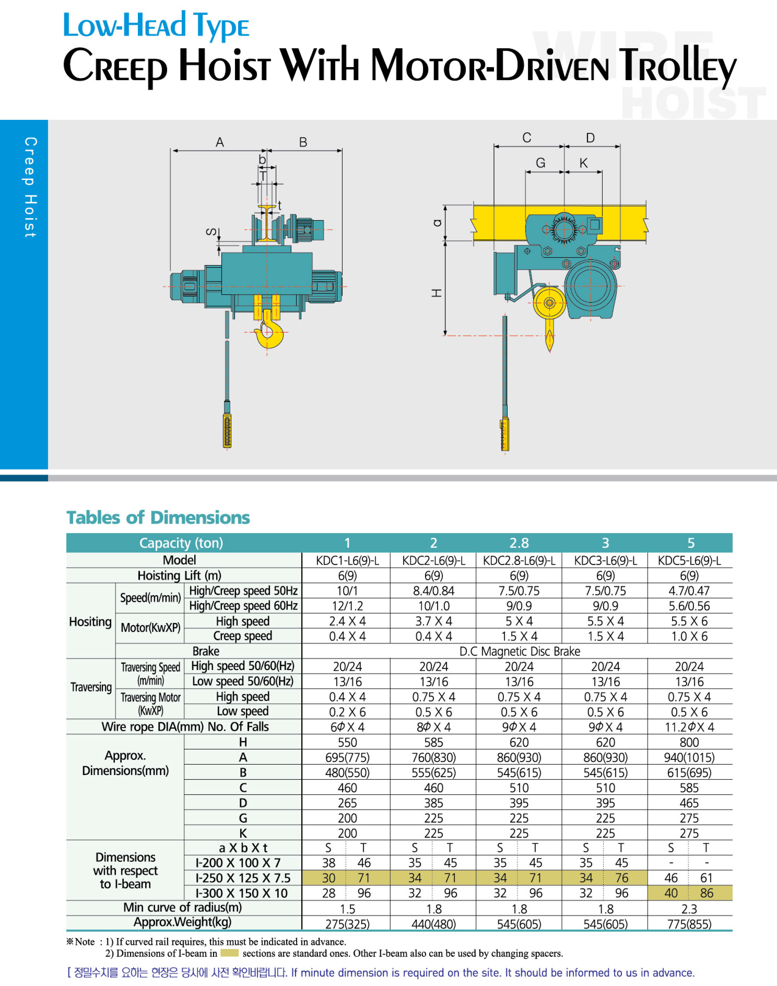 극동호이스트 - 와이어호이스트 - 로우헤드 모노레일 호이스트 (크립)