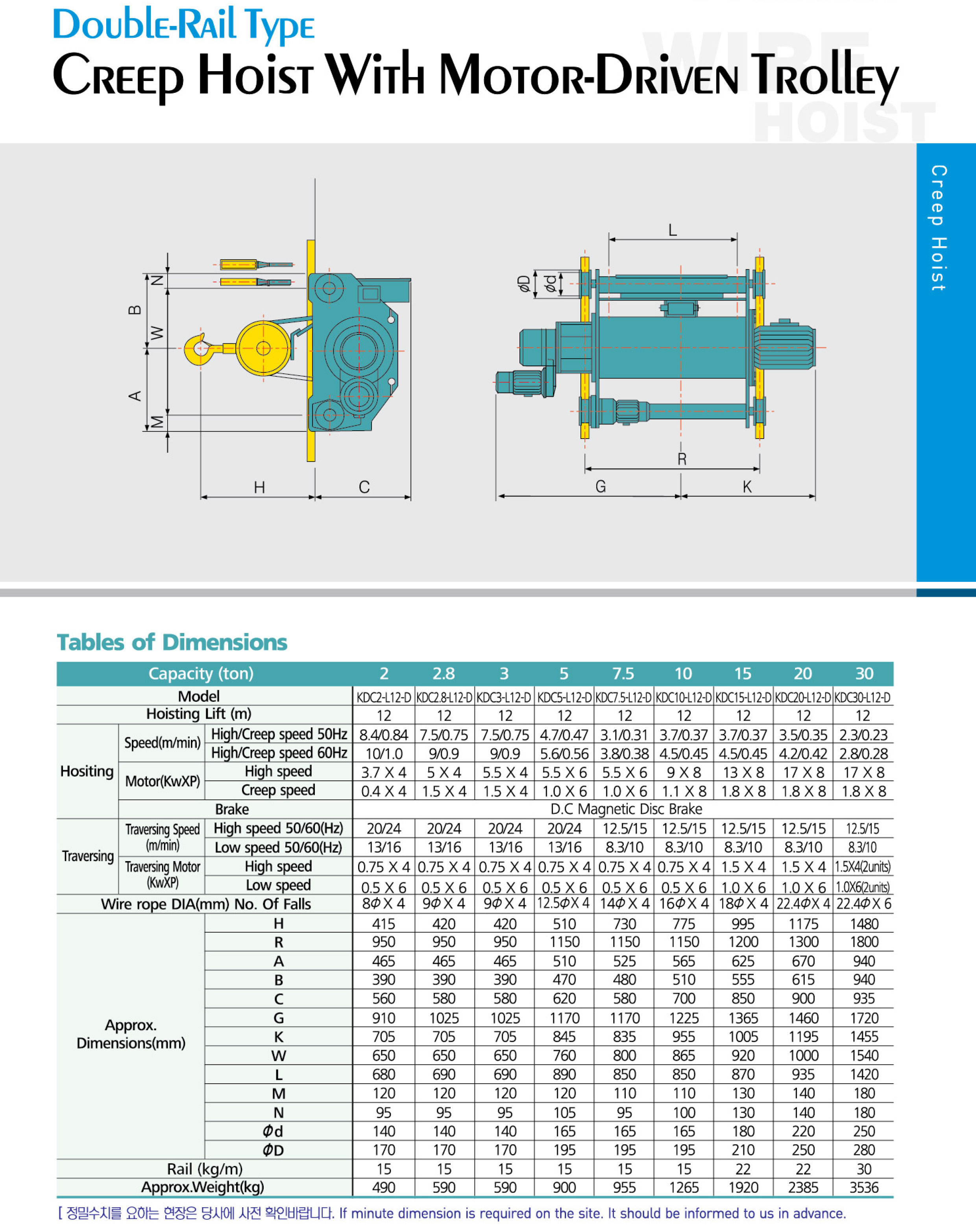 극동호이스트 - 와이어호이스트 - 더블레일 호이스트 (크립)