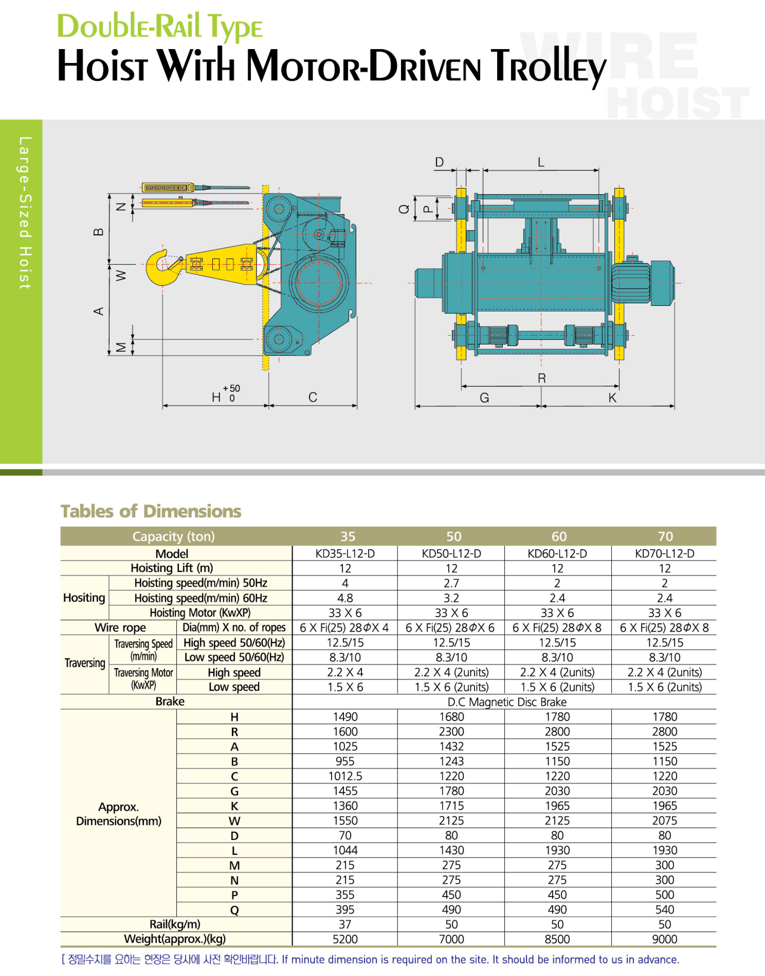 극동호이스트 - 와이어호이스트 - 더블레일 호이스트 (Large Sized)